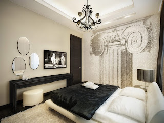 As promised, here is another of luxury appartments that drives me crazy. Here the plot is all in black and white as if to say, that here the time stopped and BW TV still shows only Marylin Monroe movies.. Perhaps that`s the case here, who knows.. All I can say is GORGEOUS!! Would you guess that this appartment was designed by Moscow interior designers Geometrix? Well, considering that there are lots of milionairs...well I think you could guessed it. I like this combination of modern and 1950`s furniture and a feeling of being hollywood diva in here...